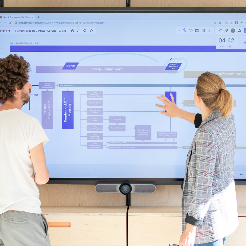 Im Recyclingprogramm-Scoping werden alle technischen und wirtschaftlichen Umsetzungsfragen eines Rücknahmesystems von vorne bis hinten durchdacht: Wie bewege ich Verbraucher:innen dazu, ausgediente Plastik-Produkte zurückzuführen? Wie wird die anschließende Logistik optimal organisiert? Welche Partner garantieren höchste Qualität bei Sortierung und Reinigung? Welcher Recyclingprozess führt zu besten Erträgen an eigenem Rezyklat? Was verlangt das Abfallrecht? Und schont das ganze System tatsächlich unterm Strich Umwelt und Klima? Das und noch viel mehr klärt HolyPoly in der Scoping-Phase. An deren Ende steht ein Konzept für ein Recylingprogramm, das perfekt auf die Ziele und Möglichkeiten des Unternehmens zugeschnitten ist. Was dann noch zu tun ist? Auf „PLAY“ drücken…